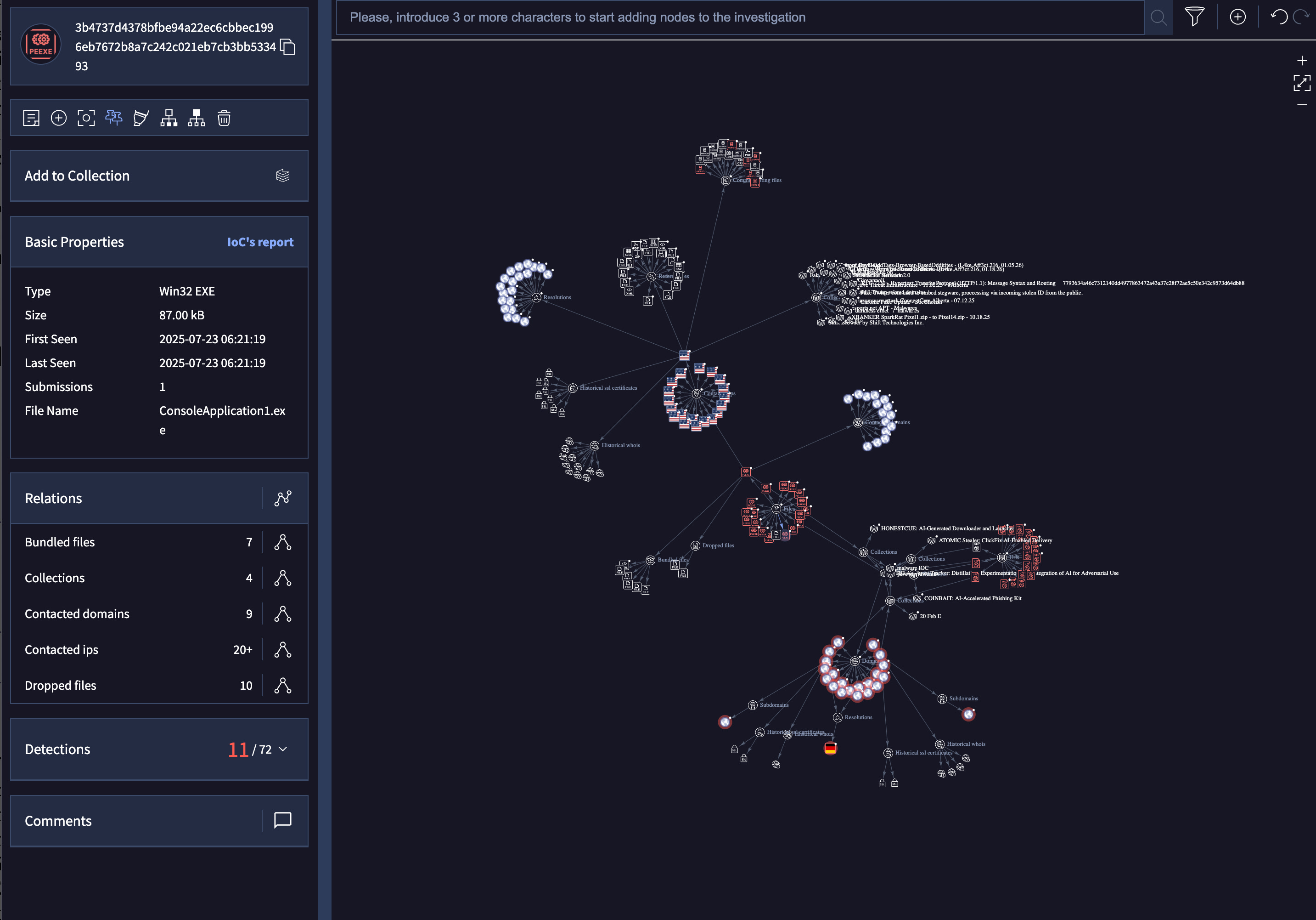 One thing that is also quite useful for researchers looking at GTIG’s reporting is that they often include Indicators of Compromise (IOCs). These can easily be interacted with through a graph user interface.