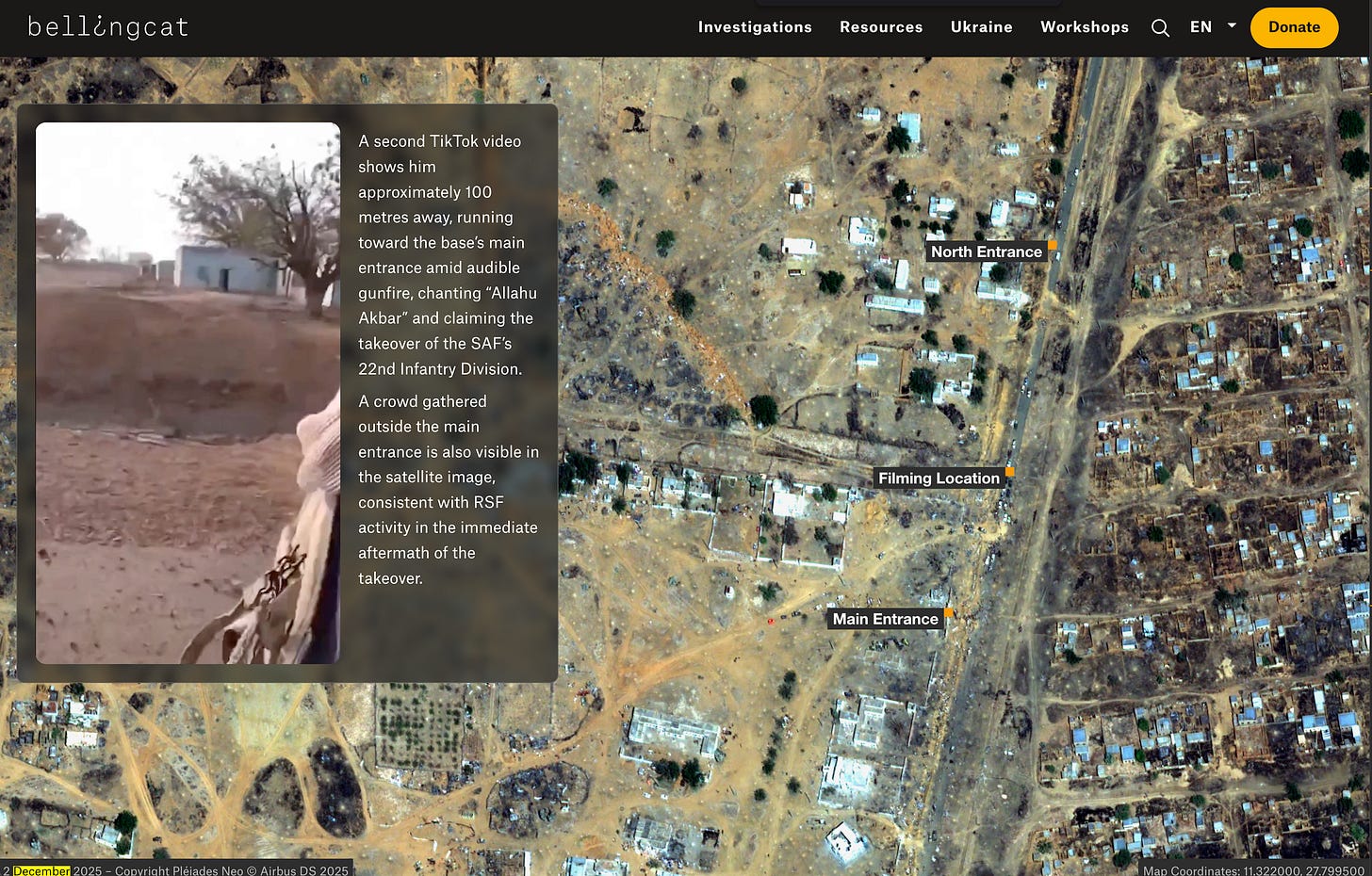 The strongest part of the piece is the link between platform content and verifiable reality on the ground. December 2025 satellite imagery was used to corroborate a mass casualty scene seen in one child’s footage, while repeated audio use across hundreds of clips pointed to coordinated amplification rather than purely organic spread.