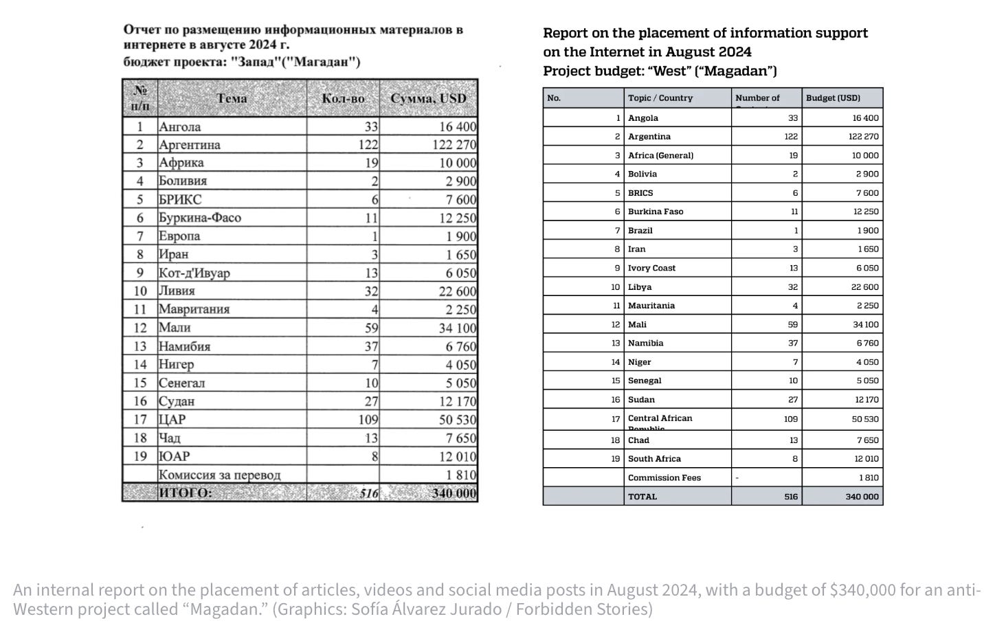 Forbidden Stories and partners published analysis of a 1,431-page leak that maps Russia’s foreign influence operations across Africa, Latin America, and the Middle East. The material covers ten months of activity in 2024, details a budget of about $7.3 million, and lays out payment structures, country targeting, and influence tactics in unusual detail.