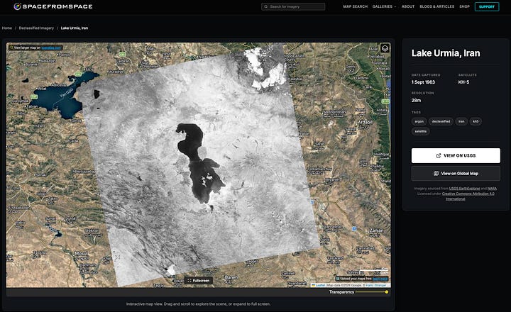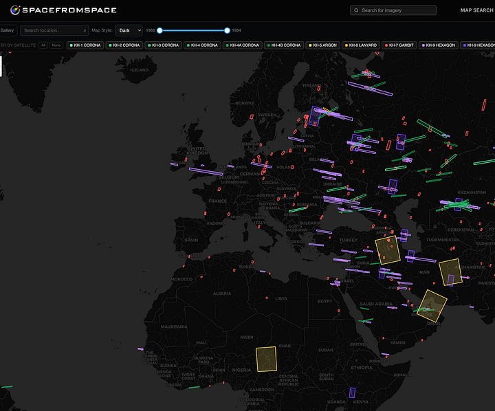 Harry Stranger’s map viewer for georeferenced CORONA and related reconnaissance imagery is so nice. It lets you pull historical baselines onto a modern globe without wrestling with the raw archive, which makes old coverage far easier to use for perimeter change, site history, and infrastructure growth work.